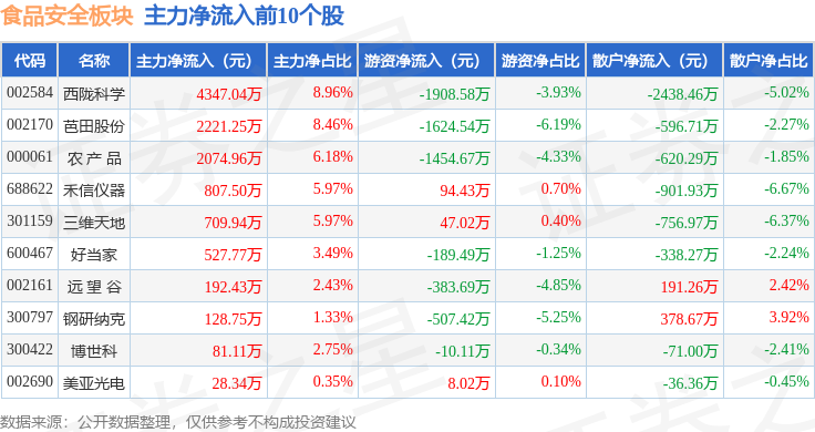 从资金流向上来看,当日食物平安板块从力资金净流出3。97亿元,逛资资金净流出250。21万元,散户资金净流入4。0亿元。食物平安板块个股资金流向见下表。