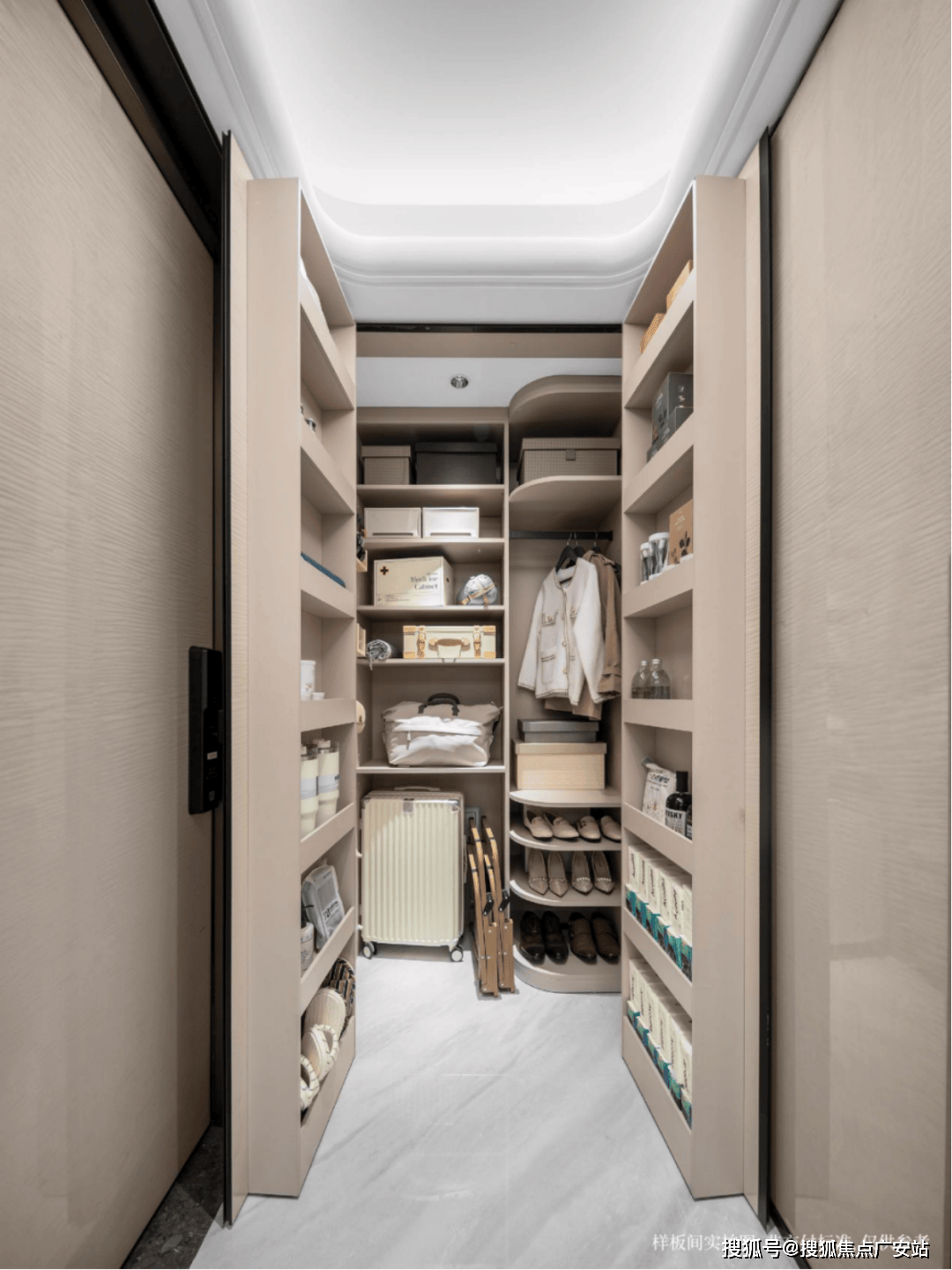 入户玄关出格设立800库大容量储物区,爬山包、婴儿车、滑雪板、行李箱等大物件都能找到安身之处,不再挤占贵重的栖身空间。